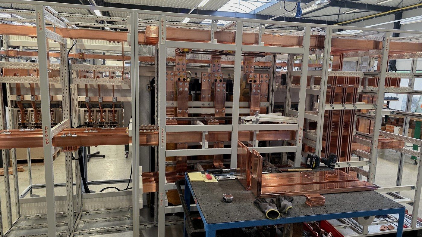 Copper busbar cutting, assembly, insulation and panel integration.